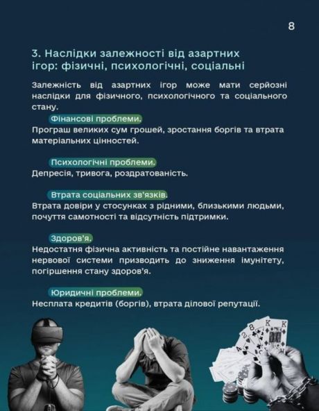 Залежність від азартних ігор може мати серйозні наслідки для фізичного, психологічного та соціального стану.