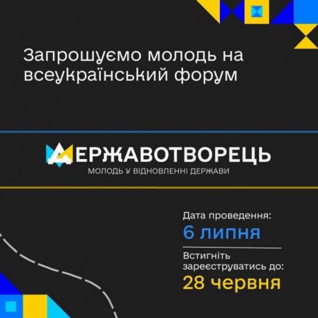6 липня відбудеться Всеукраїнський молодіжний форум «Державотворець: молодь у відновленні держави».