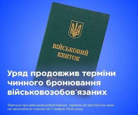 Наприклад, якщо строк дії відстрочки від призову на військову службу під час мобілізації, наданої військовозобов’язаним рішенням Міністерства економіки, закінчується 17.05.2024, згідно з постановою строк її дії автоматично продовжується на три місяці, тобто до 17.08.2024.