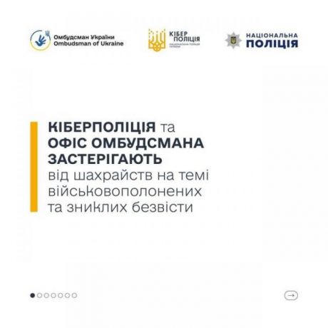 Кіберполіція та Офіс Омбудсмана України звертають увагу громадян на шахрайства, пов’язані з темою звільнення українських воїнів та пошуку безвісти зниклих людей. Зловмисники користуються вразливим емоційним станом їхніх родичів та близьких, вводячи в оману та виманюючи персональні дані.