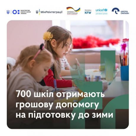 З листопада ЮНІСЕФ виділить 203,35 млн гривень на підтримку 700 українських закладів середньої освіти.
