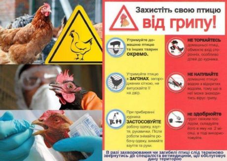 З метою охорони господарств від занесення збудника грипу птиці керівники та спеціалісти птахогосподарств, незалежно від форм власності, зобов’язані суворо виконувати заходи, які передбачені Інструкцією з профілактики та ліквідації грипу птиці, яка зареєстрована в Міністерстві юстиції України від 8 листопада 2011 року за N 1277|20015, наказу Держпродспоживслужби від 15 грудня 2021 року № 830 «Про затвердження Плану дій при підозрі на захворювання (загибель) на грип та/або хворобу Ньюкасла».