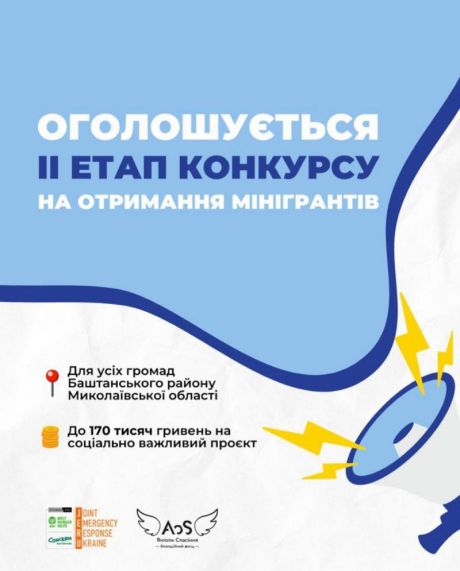 БФ «Янголи Cпасіння» у партнерстві з JERU (Спільне реагування на надзвичайні ситуації в Україні) оголошує приймання заявок на участь у конкурсі соціальних ініціатив з метою отримання мінігрантів на вирішення важливих соціальних проблем громад та запрошує ініціативні групи Баштанського району, Миколаївської області до участі.