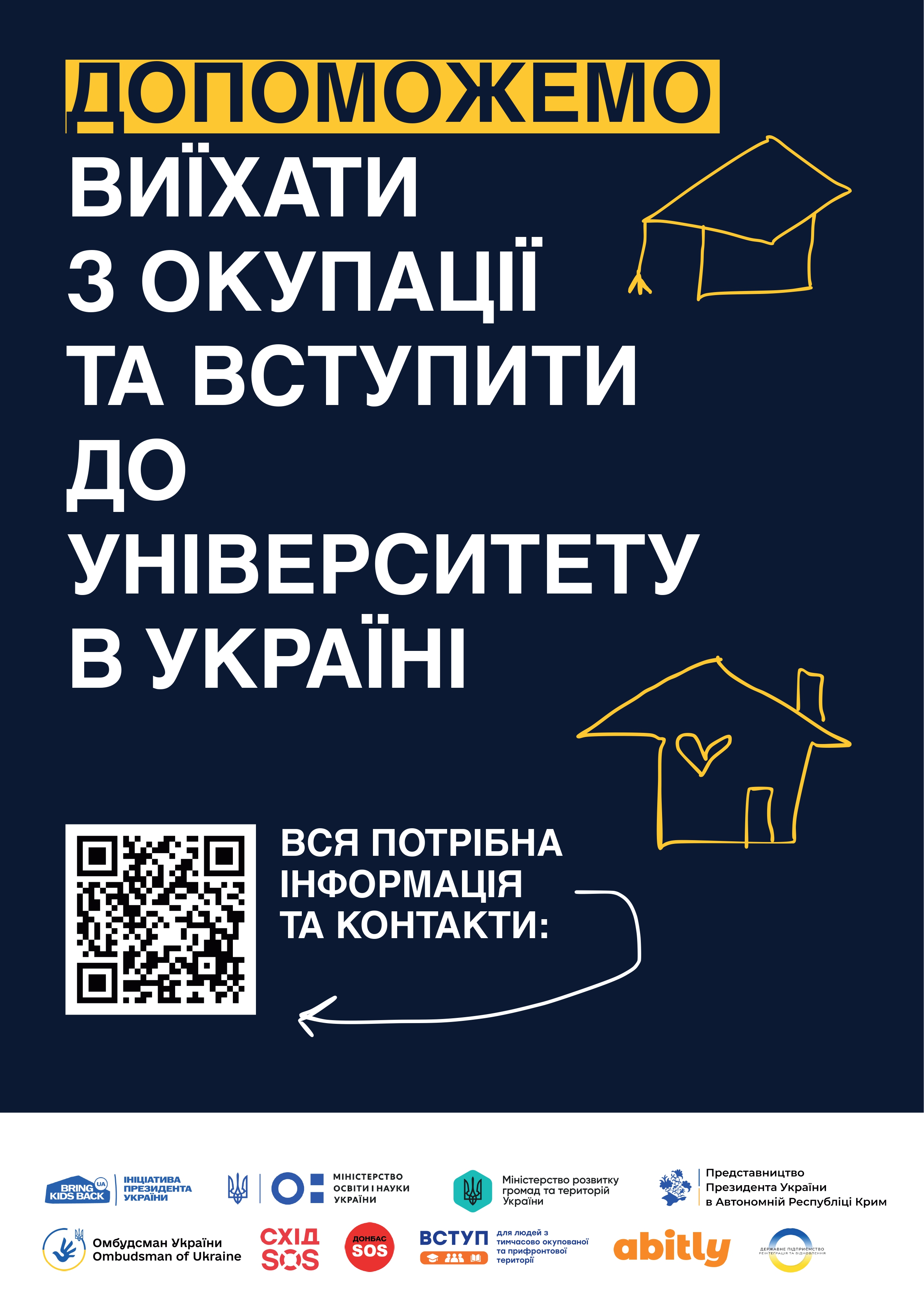 Детальна інформація про можливість безпечно виїхати з ТОТ, умови вступу до закладів вищої освіти в Україні та контакти для звʼязку зібрана за цим посиланням.