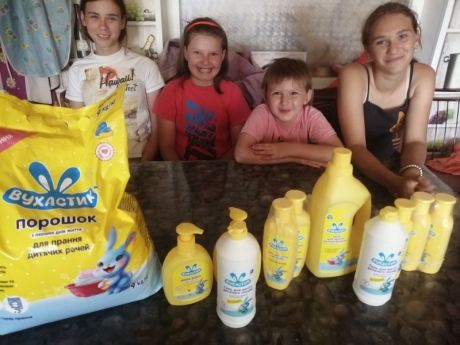 11 та 14 липня службою у справах дітей Баштанської районної військової адміністрації передано допомогу у вигляді засобів гігієни та побутової хімії від благодійної організації «Благодійний фонд «Руслана Шостака» для дитячих будинків сімейного типу, у яких на вихованні перебуває 5 та більше дітей-сиріт та дітей, позбавлених батьківського піклування.