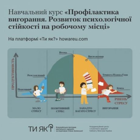 Якщо хоча б одне із цих тверджень вам відгукується, у пригоді стане навчальний курс «Профілактика вигорання. Розвиток психологічної стійкості на робочому місці». Він доступний на освітній платформі «Ти як?» Всеукраїнської програми ментального здоров’я.