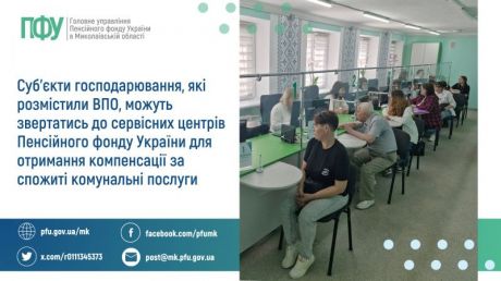 Суб'єкти господарювання, які розмістили ВПО, можуть звертатись до сервісних центрів Пенсійного фонду України для отримання компенсації за спожиті комунальні послуги