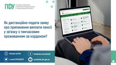 На вебпорталі електронних послуг Пенсійного фонду України реалізовано можливість подати в електронному вигляді заяву про припинення виплати пенсії у зв’язку з тимчасовим проживанням за кордоном.