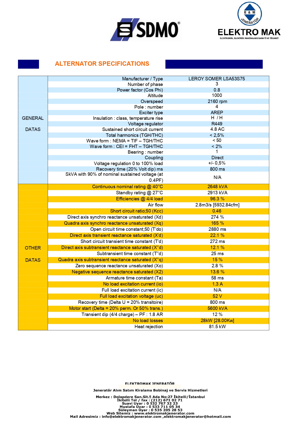 Технічні характеристики генератора
