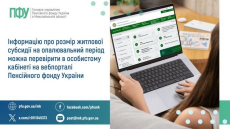 Інформацію про розмір житлової субсидії на опалювальний період можна перевірити в особистому кабінеті на вебпорталі Пенсійного фонду України
