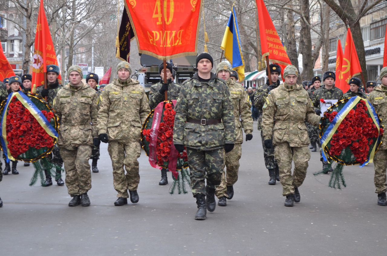 Вчора, 15 лютого, в День вшанування учасників бойових дій на території інших держав та з нагоди 26-ї річниця виводу військ з Афганістану, сотні миколаївців вийшли на Меморіальний марш ветеранів. За традицією, марш розпочався біля обласного Палацу культури. На чолі колони – БТР, поряд крокували курсанти військової кафедри Миколаївського національного університету ім. В.Сухомлинського, вони несли фотографії всіх миколаївських військовослужбовців, які загинули в Афгані та прапори військових підрозділів. Поряд з військовими, афганцям, воїнами-інтернаціоналістами, ветеранами в Марші взяли участь і перший заступник голови облдержадміністрації Микола Романчук, заступник голови облради Олександр Смирнов, перший заступник міського голови Юрій Андрієнко.