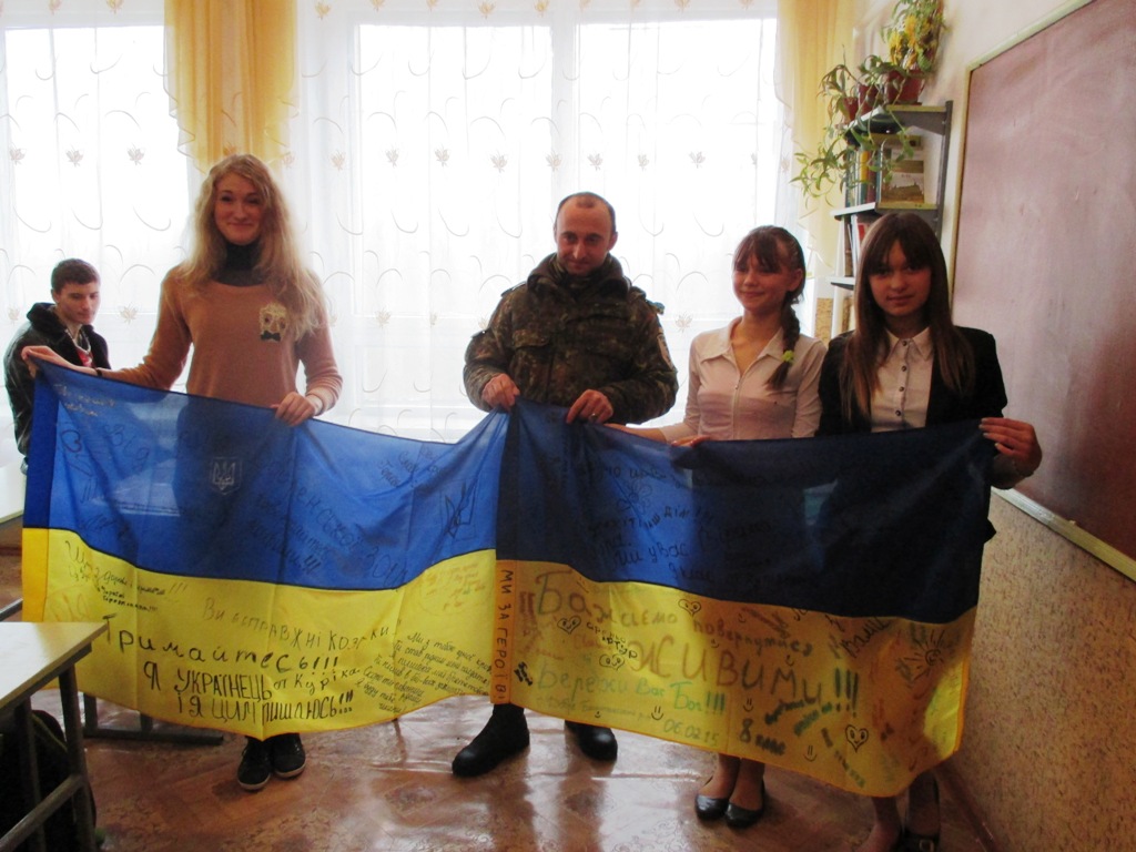 Учні написали свої побажання, звернення до воїнів на прапорах, які майорять, як символ перемоги, нескореності.