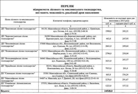 Перелік підприємств, які реалізують дрова та здійснюють постачання вугілля населенню