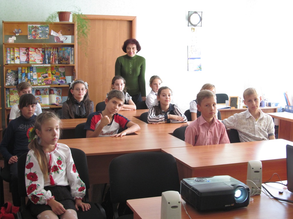 За допомогою цікавої і змістовної мультимедійної презентації юних користувачів ознайомили з діяльністю українських партизанів, їх значним внеском у перемогу над фашистськими загарбниками. Та найбільшезацікавила дітей розповідь про Баштанський партизанський загін, матеріали про який взято з книги Е.Давиденко «Баштанка. Три роки війни», адже ця, написана в гостросюжетній манері документальна повість, розповідає про дії на окупованій території Баштанського партизанського загону в 1941-1944 роках.