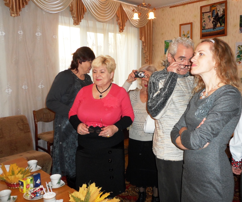 З душевною теплотою і від щирого серця звучали на цій зустрічі музичні вітання майстрині у виконанні працівників музичної школи - О. Сушицького, І. Османова, В. Стоянової, членів клубу – М. Попель, С. Ментинського, Г. Мухіної. А керівник гурту «Зоряний шлях» Віктор Коваленко заспівав гарні пісні зі свого репертуару та подарував Людмилі Петрівні свої збірки поезій «Трояндовий світ» та «Найдорожче».