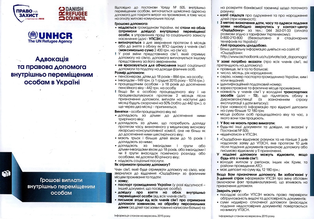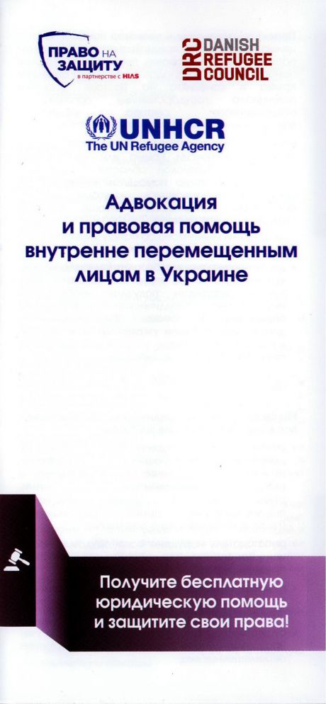 В Україні стартував проект Адвокація та правова допомога внутрішньо переміщеним особам, який реалізується Датською радою у справах біженців спільно з Всеукраїнською благодійною фундацією "Право на захист" за підтримки Управління Верховного комісару ООН у справах біженців.