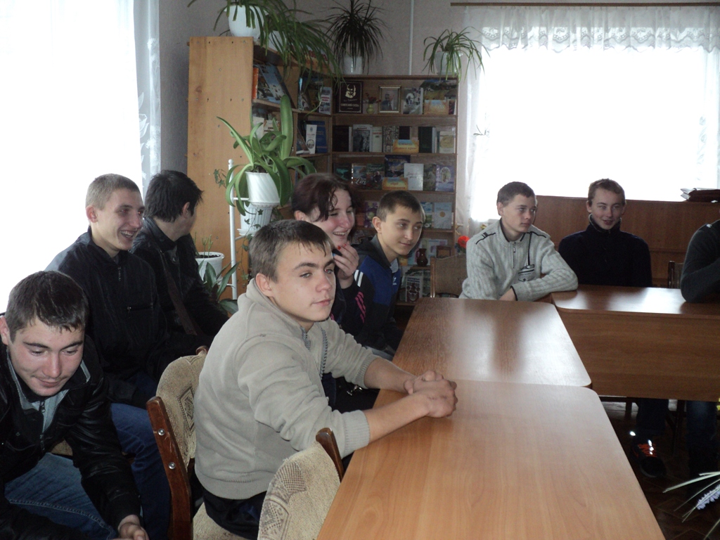 25 листопада в рамках Акції в центральній районній бібліотеці проведено навчально-тренінгове заняття «Цінність твого життя – в твоїх руках» за участю директора районного центру соціальних служб для сім’ї, дітей та молоді Людмили Олександрівни Смоли. На захід до бібліотеки завітали учні професійного ліцею міста разом з бібліотекарем Ніною Іванівною Андреєвою.