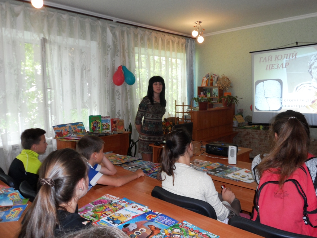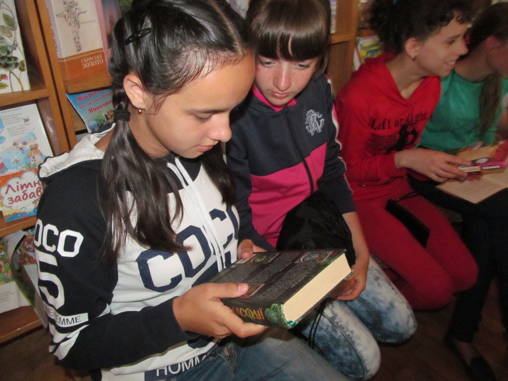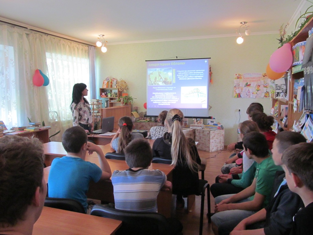 А учні 7-их класів разом з вчителями Люлько Т. Г. та Сіренко Т. І. 8 червня завітали до бібліотеки на День інформації під назвою: «На дозвіллі літнього дня». Під час заходу за допомогою мультимедійної презентації гості завітали до найдивовижніших бібліотек світу, які є скарбом і особливим багатством, бо їх архітектура напрочуд красива й унікальна. Також діти мали змогу побачити на екрані найцікавіші та рідкісні екземпляри стародруків, а також сучасних книг, які існують в світі. Це найдорожчі, найбільші та найменші книги, тривимірні книги, нано- та мікрокниги, їстівні книги, книга-гіпертекст, книга «Сто тисяч мільярдів сонетів» та багато ін. Також для юних користувачів був проведений бібліографічний огляд літератури, яку із задоволенням можна почитати на дозвіллі літнього дня – це пригоди, фантастика, детективи, фентезі та романи для дівчаток.