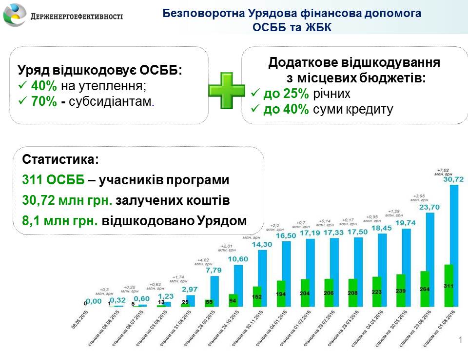 Загалом, з початку дії програми більше 300 ОСББ взяли участь в Урядовій програмі з енергоефективності, освоївши більше 30 млн грн. на утеплення.