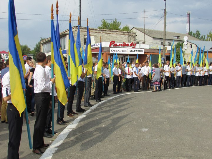 Сотні жителів міста у вишиванках, з прапорами та українською символікою пройшли парад вишиванок центром міста від райдержадміністрації до погруддя генія українського народу Т.Г.Шевченка, де відбулася урочиста церемонія, приурочена підняттю Державного Прапора України, а також покладання квітів Великому Кобзареві.