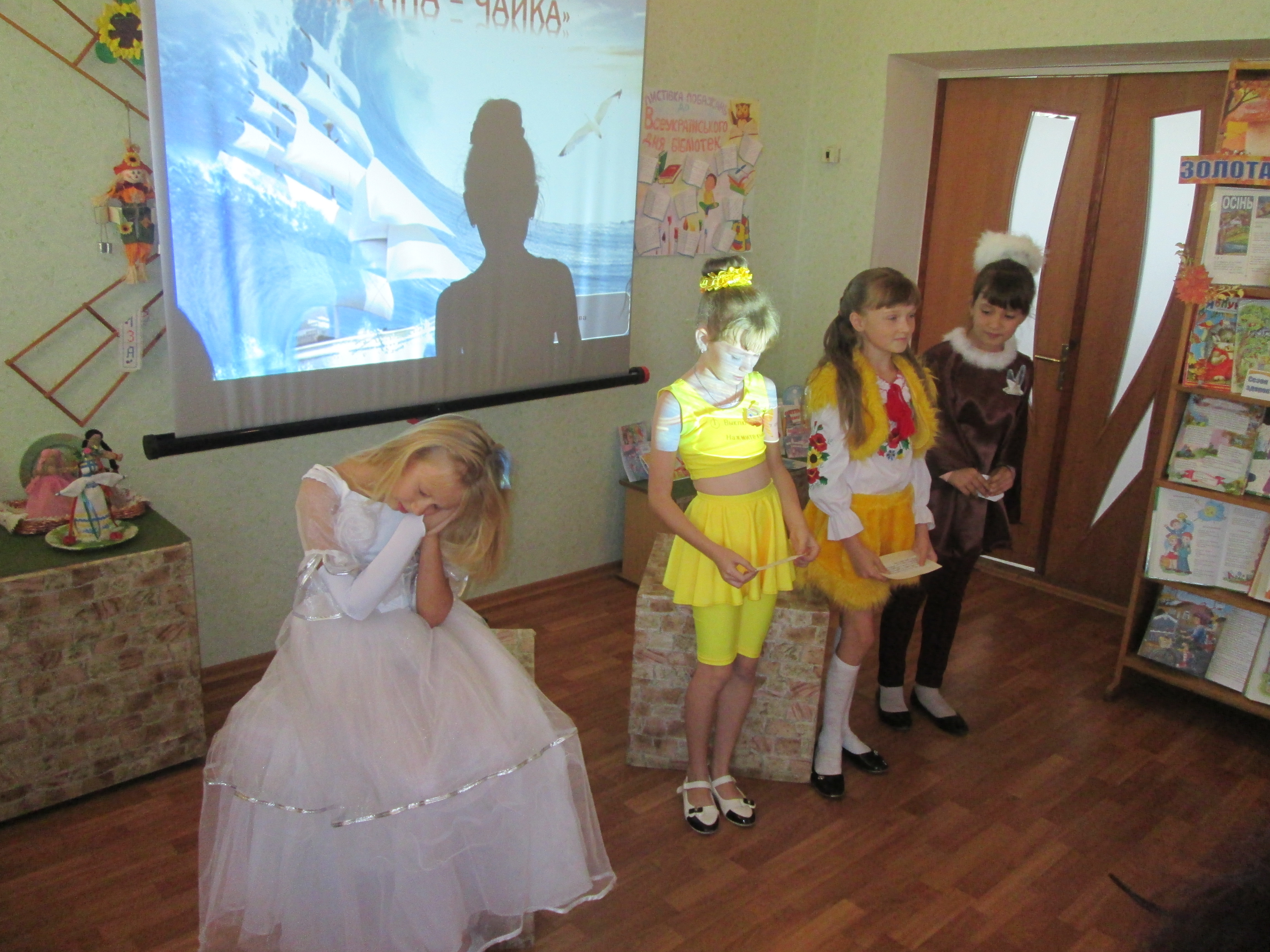 На захід учні 5-Б класу завітали з вчителем української мови і літератури Звьоздкою І.В. Працівники бібліотеки ознайомили юних користувачів з життєвим і творчим шляхом Дніпрової Чайки, а потім запропонували їм переглянути інсценізацію творів видатної письменниці. Такі різні за жанрами – драматична «Дівчина-Чайка» і весела «Коза-дереза» - обидві маленькі вистави були з захопленням сприйняті нашими читачами. За свою майстерну гру маленькі актори були нагороджені бурхливими оплесками однокласників. Працівники дитячої районної бібліотеки щиро вдячні своїм юним користувачам – Гомілко Дарині, Салєєвій Віті, Денис Ірині, Денис Наталі, Гордієнко Лілії, Прядко Едуарду, Непом’ящому Дмитру за чудово виконані ролі, і звісно ж, класному керівнику 5-Б класу ЗОШ № 1 Шваб Н.А. за розуміння і підтримку.