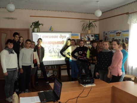 Особливо дітей зацікавила легенда про те, чому козаки носили чуба, так званого оселедця, про його значення для кожного козака та магічну силу. А ще про унікального дуба, який росте на острові Хортиця. За переказами, цьому оспіваному в піснях та легендах дереву вже понад 700 років. Весь захід супроводжувався мультимедійною презентацією. Також учні мали змогу переглянути відео-кліп Назарія Яремчука «Гей, ви, козаченьки», який надав заходу особливої яскравості та патріотизму.