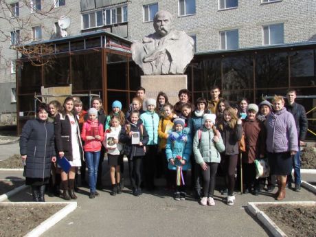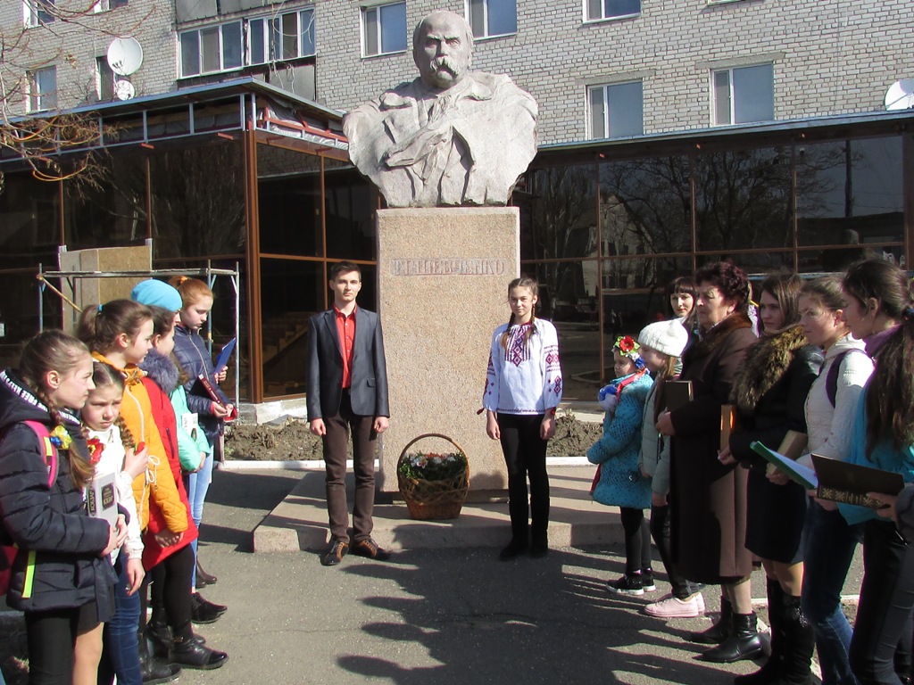 Всі учасники заходу вирушили до пам’ятника Тарасу Шевченку, щоб покласти квіти та вшанувати пам'ять великого сина України. Відкрила «Шевченківські читання» учениця 2-А класу ЗОШ №1 Булика Євгенія віршем «Я маленька українка». Всі бажаючі декламували поезію Шевченка та вірші, присвячені великому сину українського народу. Як завжди емоційно та зворушливо читала вірші М.І.Василенко.