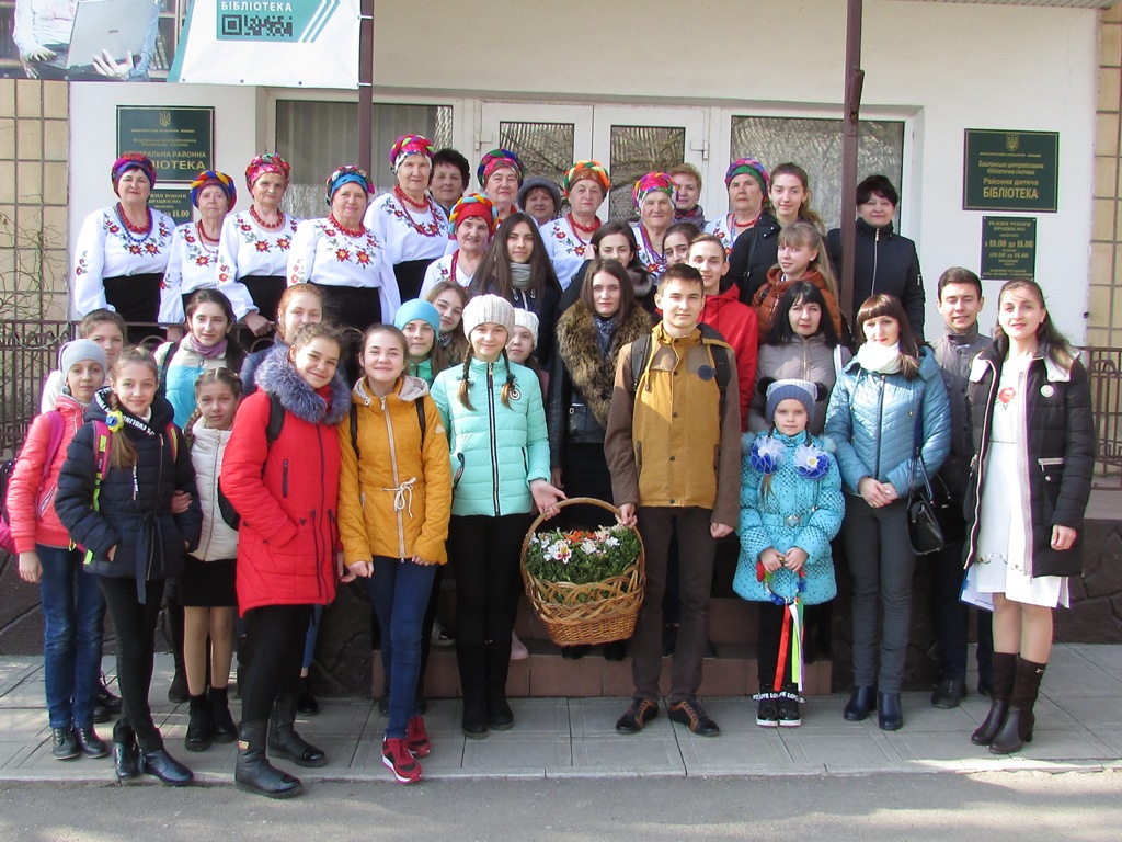 В цей сонячний весняний день до бібліотеки завітали учні загальноосвітніх закладів міста, вчитель української мови ЗОШ №1 І.В.Звьоздка, соціальний педагог ЗОШ №2 А.В.Коблик, члени літературно-мистецького клубу «Роксолана» та члени хору ветеранів праці та дітей війни на чолі з керівником М.В.Попель.