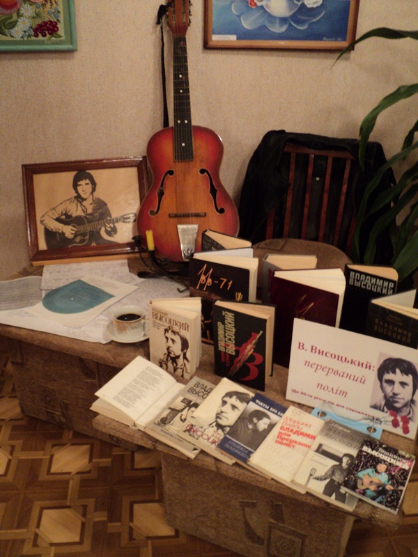 Усі бажаючі мали нагоду переглянути книжкову виставку-інсталяцію «В.Висоцький: перерваний політ», література якої познайомила з життям та творчістю видатного актора, співака і поета.