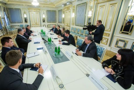 Президент України Петро Порошенко зустрівся з делегацією французьких парламентарів на чолі з Головою групи дружби «Франція-Україна» у Національних зборах Франції Валерією Фор-Мунтян.