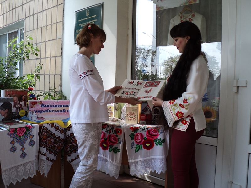 В рамках акції було оформлено книжково-ілюстративну виставку «Вишиванка – український оберіг». На виставці були представлені бібліотечні видання: «Українська вишивка», «155 стародавніх українських вишивок», «Вишивання долі», «Український літопис вбрання», «Традиційне вбрання українців» та інші. З цих видань можна дізнатися про історію виникнення Всесвітнього свята вишиванки, більш детально ознайомитися з історією національного вбрання українців, символами у вишивках та їх значенням. Прикрашали книжкову експозицію барвисті українські рушники баштанської майстрині-вишивальниці О.О.Іванової.