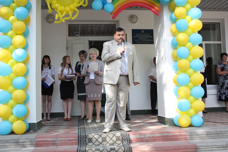 У вітальній промові Сергій Шевченко побажав подальших життєвих здобутків випускникам школи та гарного і змістовного відпочинку всім іншим учням. Звернув увагу на здобутки школярів та педагогів у навчальній і викладацькій діяльностях, особливий статус навчального закладу. Адже Баштанська ЗОШ №1 – учасник Всеукраїнського експерименту з проблеми формування інтелектуальної культури особистості у межах навчального закладу, дослідно-експериментальної роботи з методики і технології конструювання компетентісно - діяльнісного уроку літератури. У колективі активно розробляються наукові підходи до впровадження курсів «Логіка», «Християнська етика», «Сталий розвиток», заклад небезуспішно прикладає значені зусилля для виховання повноцінної, інтелектуально-розвиненої та освіченої особистості.