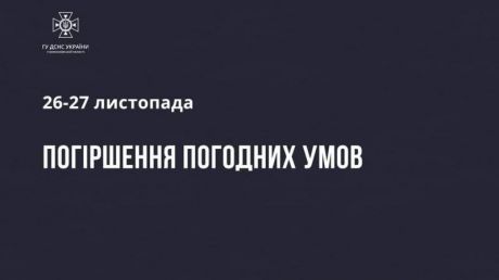 26 листопада сильні опади у вигляді снігу, мокрого снігу та дощу.