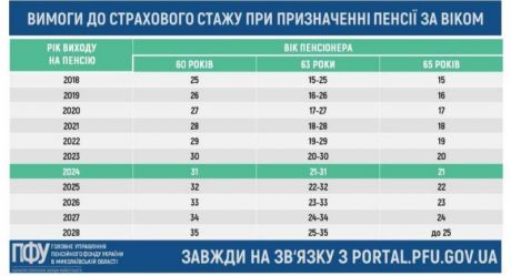 щороку збільшується на один рік, і якщо у 2018 році вона становила 25 років, у 2022 році – 29 років, у 2023 році – 30 років, то вже починаючи з 01 січня 2024 року для призначення пенсії за віком при досягненні 60 років необхідно набути не менше 31