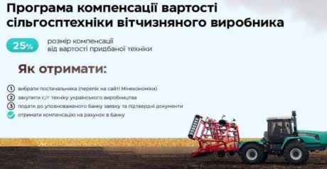Баштанська районна військова адміністрація повідомляє, що в Україні відновили дію урядової програми компенсацій аграріям 25% вартості придбаної техніки і обладнання вітчизняного виробництва.