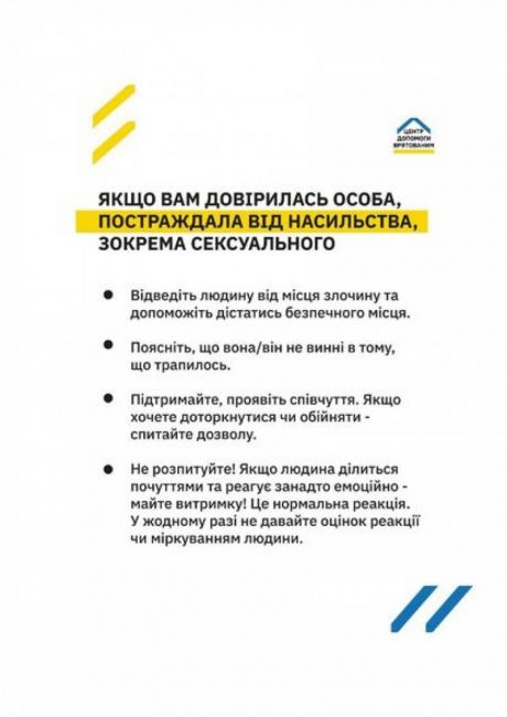 Тут розміщена інформація, яка можете допомогти, якщо вам довірилась особа, яка постраждала від насильства, зокрема сексуального.