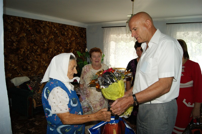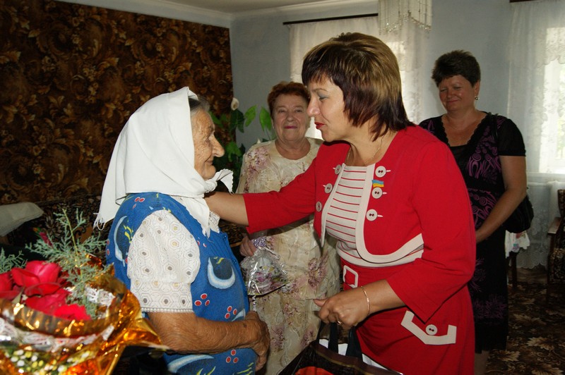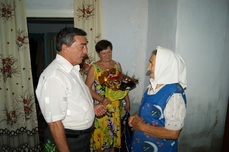 14 липня за участю голови райдержадміністрації І.В.Рубського, заступника голови районної ради В.М.Каратєєвої , перший заступник начальника управління праці та соціального захисту населення райдержадміністрації Л.А.Гаврилюк та міського голови В.Ф.Рибаченка, голова міської організації ветеранів війни та праці Н.І.Буцька відбулось урочисте привітання жительки м.Баштанки Паламар Галину Дмитрівну з 90-літнім ювілеєм та поздоровили її, квітами і цінними подарунками.