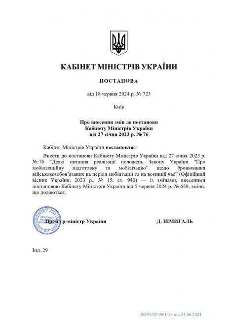 Кабінетом Міністрів України прийнято постанову від 18 червня 2024 року № 723 "Про внесення змін до постанови Кабінету Міністрів України від 27 січня 2023 р. № 76".