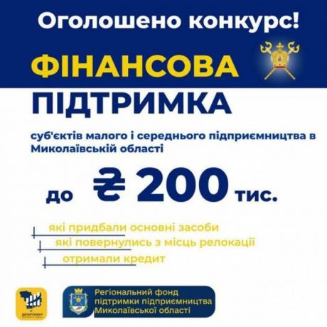 За ініціативи Миколаївської обласної військової адміністрації, спільно з Регіональним фондом підтримки підприємництва у Миколаївській області, оголошено конкурс серед підприємців області на отримання фінансової підтримки.