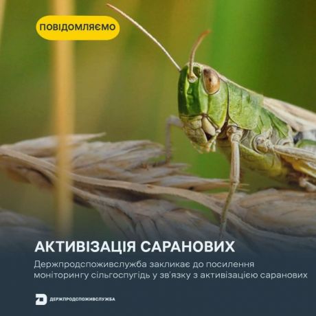 Держпродспоживслужба закликає аграріїв, громади та органи місцевого самоврядування посилити моніторинг сільгоспугідь через підвищену активність саранових.