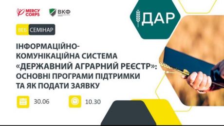 Баштанська районна військова адміністрація інформує, що 30 червня о 10.30 Всеукраїнський конгрес фермерів у партнерстві з міжнародною гуманітарною організацією MERCY CORPS організовує проведення вебінару на тему: «Інформаційно-комунікаційна система “Державний аграрний реєстр”: основні програми підтримки та як подати заявку».