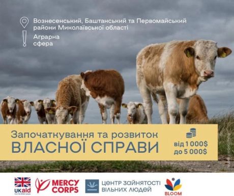 ВПО та місцеві мешканці Вознесенського, Первомайського та Баштанського районів Миколаївської області можуть отримати від $1000 до $5000 (у гривнях) на запуск або відновлення бізнесу в агросфері