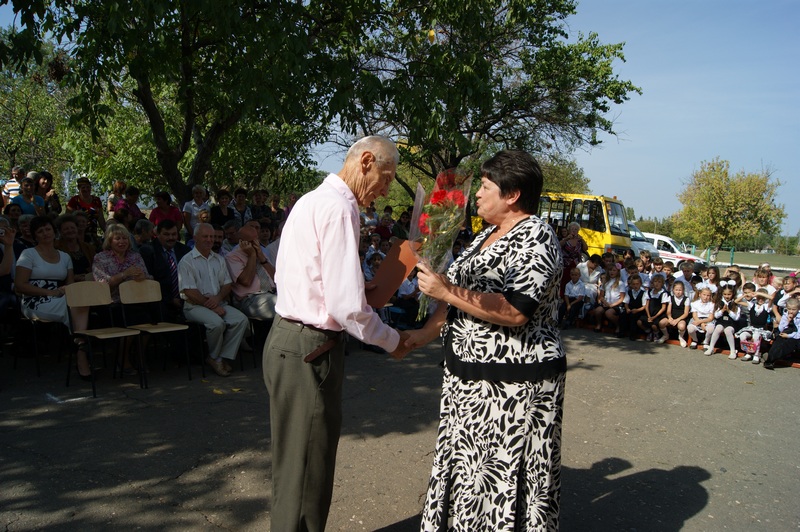 Людмила Іванівна вручила голові первинної ветеранської організації Степану Павленку подяку від голови обласної ради І. С. Дятлова з нагоди відзначення Дня людей похилого віку та  за його вклад у виховання підростаючого покоління.