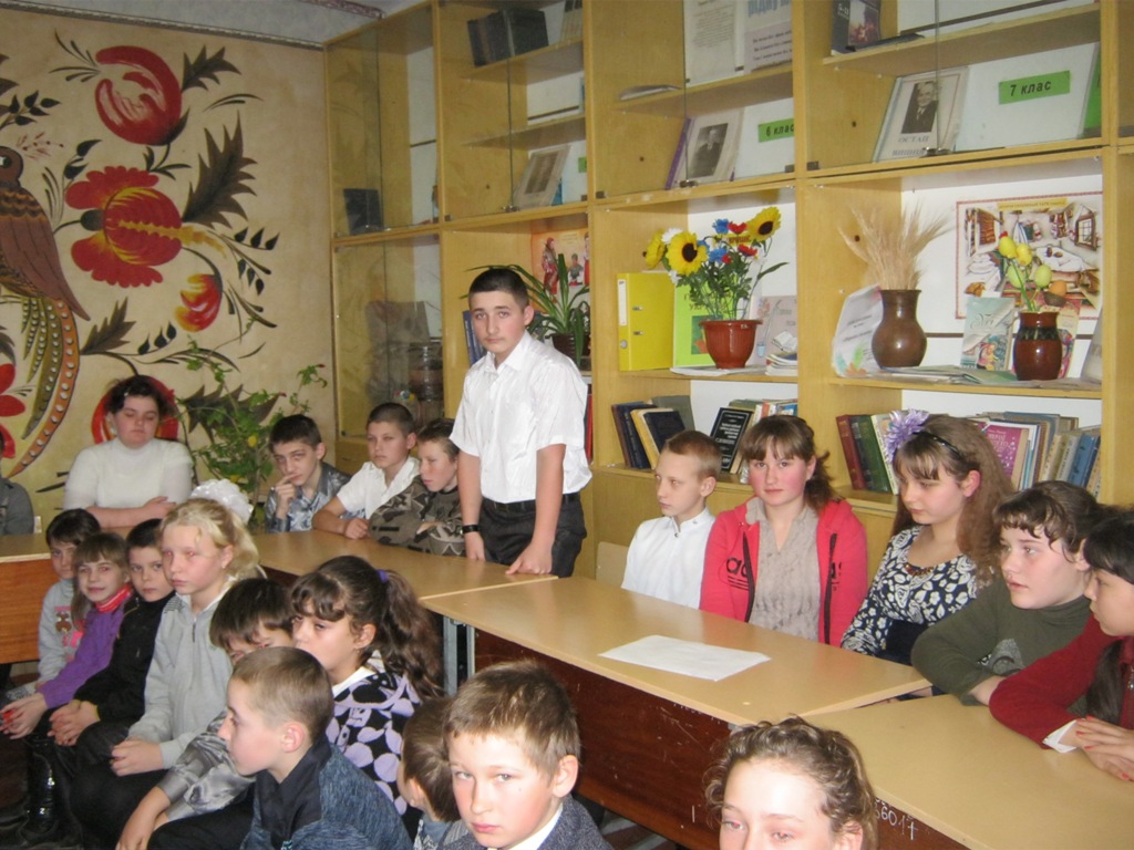 Клас був святково прикрашений, учні були одягнені урочисто. Було багато національної символіки. Коли Данило. зайшов до залу, учні вітали його гучними оплесками, стоячи, вигукуючи гасла: «Героям слава!», «Дякуємо!».