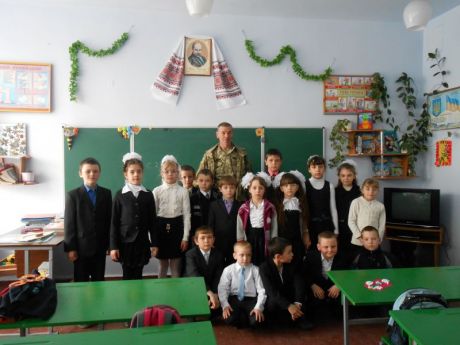 Учні подякували воїну за його участь в Антитерористичній операції. І на згадку про цю зустріч Сергій Ярославович сфотографувався з учнями школи.
