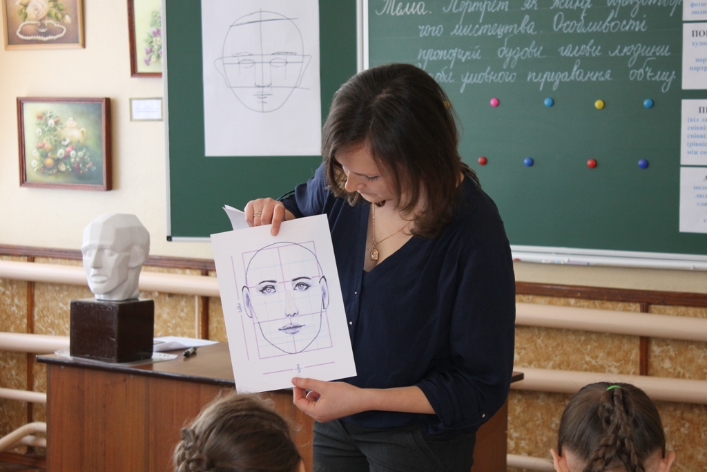 З візиткою закладу виступили кращі учні школи. У рамках педагогічного практикуму проведено показові уроки музичного, образотворчого мистецтв, художньої культури: урок музичного мистецтва у 3 класі з теми : «Розвиток Музики» Учитель музичного мистецтва Толочко Вікторія Леонтіївна; урок образотворчого мистецтва у 6 класі з теми: «Портрет як жанр образотворчого мистецтва. Особливості пропорцій та будови голови людини. Спроби умовного передавання об’єму», учитель образотворчого мистецтва Шиманська Маргарита Дмитрівна; урок образотворчого мистецтва у 3 класі з теми: «Птахи в польоті. Відтворення характерних особливостей силуету птахів у русі», учитель початкових класів Котєгова Світлана Тимофіївна; урок художньої культури у 9 класі з теми: «Художня культура та середовище. Реклама», учитель художньої культури та світової літератури Малярчук Ірина Олександрівна.