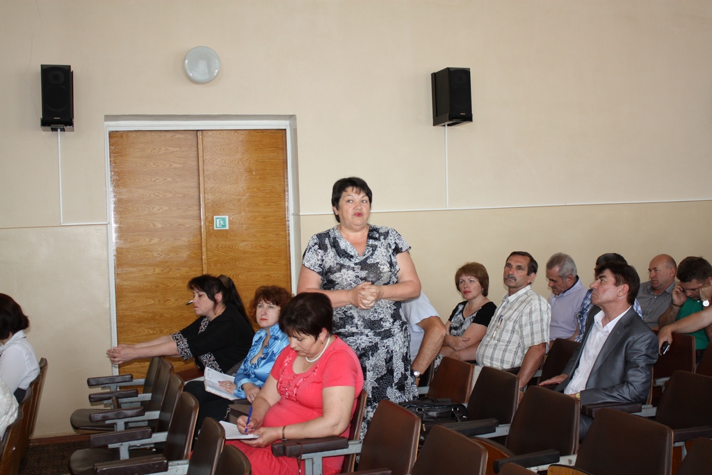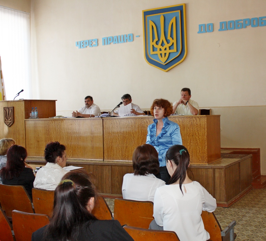 З питання «Про внесення змін до складу ліквідаційної комісії щодо ліквідації комунальної установи «Баштанський районний центр фінансово-господарського обслуговування закладів та установ освіти» депутатів проінформувала начальник відділу освіти, молоді і спорту райдержадміністрації Бєлова О.І. та повідомила про заяву голови ліквідаційної комісії Дерило О.Д., яка не може виконувати обов’язки голови комісії за станом здоров’я.