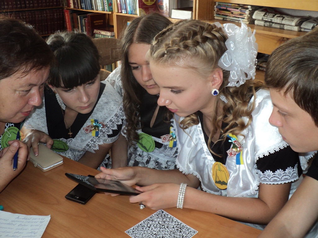 Завідуюча відділом обслуговування ЦРБ Ірина Озерова привітала учасників з Днем Знань та розповіла про всі таємниці, інформаційні відкриття та приємні несподіванки, які чекають на учасників квесту, адже бібліотечний захід буде проходити в нестандартній формі - з використанням інформаційних технологій. А інженер-програміст Центру вільного доступу до Інтернет Іван Крижановський розповів учням про використання на заході QR-коду (це графічна картинка, в якій закодовано невеликий інформаційний матеріал, що розпізнається сучасним мобільним пристроєм), а також встановив на смартфони учасників програму для його розпізнавання та ознайомив з використанням методів криптографії (шифрування), які розробив у свій час ще Юлій Цезар для шифрування своїх листів. Ця інформація дуже зацікавила всіх присутніх.