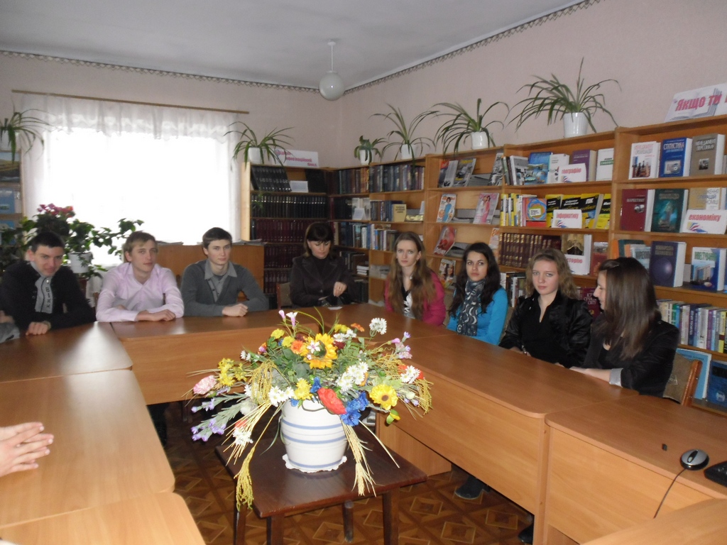 12 березня до бібліотеки завітали учні 11-Б класу Баштанської ЗОШ I-III ст. №2 разом з вчителем української мови і літератури О. П. Бурдейною. Провідний бібліограф ЦРБ Н. В. Іщенко познайомила учнів з літературною та мистецькою спадщиною Т. Г. Шевченка, який по праву займає почесне місце в історії українського народу. Ми щиро захоплюємося високим образом Кобзаря, його відданістю правді і свободі. Інформаційна година супроводжувалась мультимедійною презентацією в програмі Power Point.