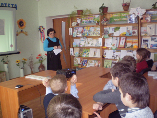 Традиційно на відкриття Тижня бібліотекарі районної дитячої бібліотеки підготували свято книги під гаслом «Свято тих, хто любить книгу». На нього завітали наші активні користувачі – учні 4-А класу ЗОШ№1 з учителем Хижняк Н.В.Заступник директора ЦБС по роботі з дітьми Скрипник Н.О. привітала всіх присутніх зі святом, особливо відзначивши кращих читачів 4-А класу. Бібліотекарі Шкарбан Л.Є. таБоркова С.М. розповіли багато цікавого з історії цього свята, продемонстрували мультимедійні презентації з історії книги, а також розповіли про найбільші і найоригінальніші бібліотеки світу. Гості із задоволенням прийняли участь у веселій казковій вікторині.